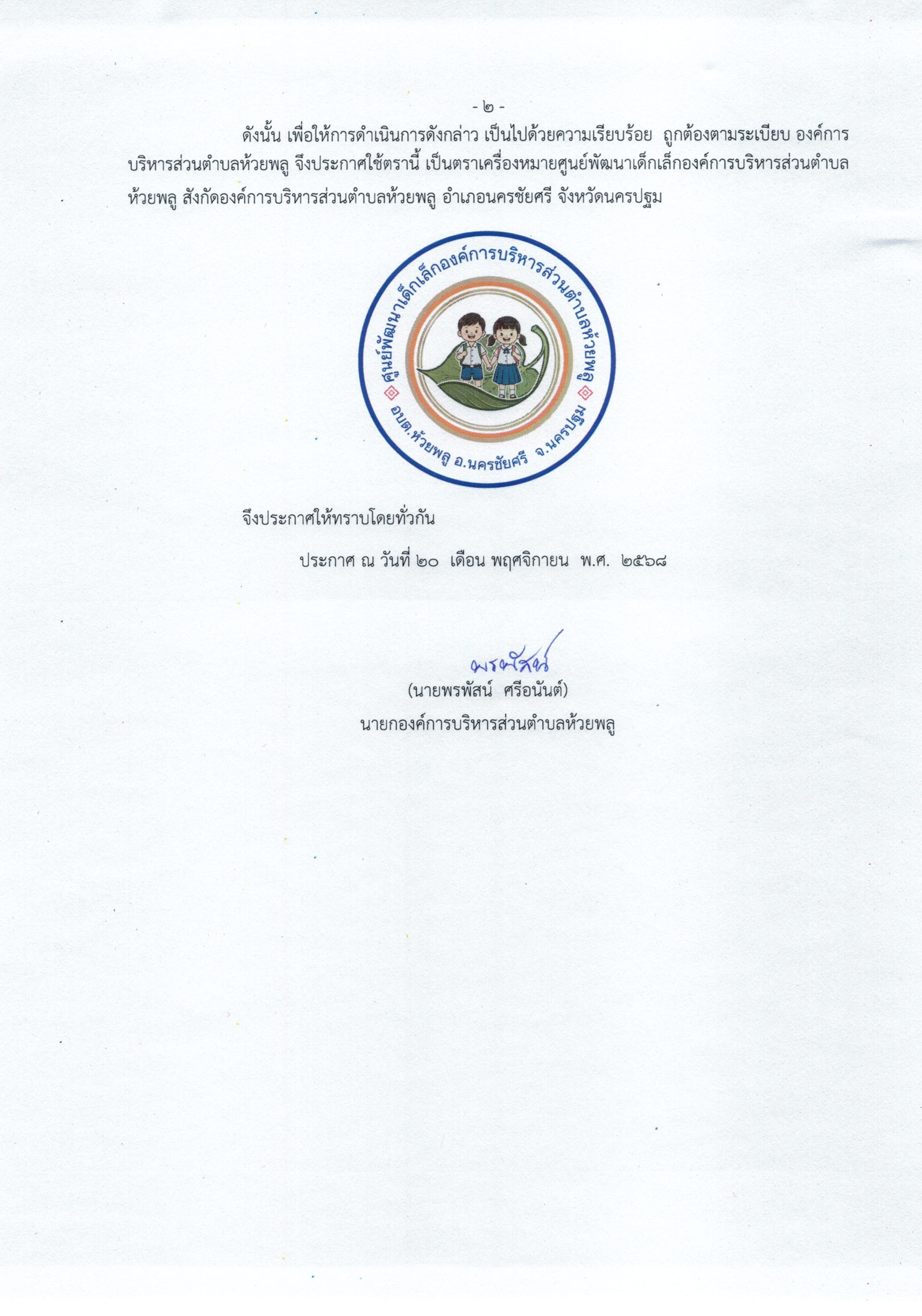 แจ้งประชาสัมพันธ์ ประกาศใช้ตราเครื่องหมายศูนย์พัฒนาเด็กเล็กองค์การบริหารส่วนตำบลห้วยพลู